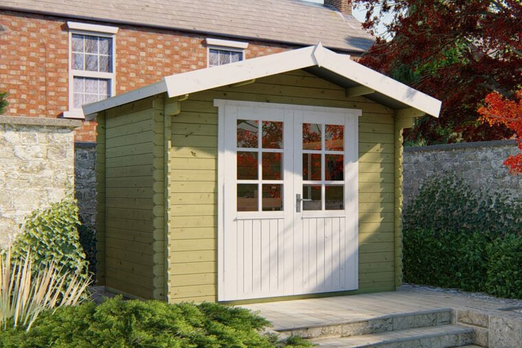 Alle 28 mm modellen van Countrywood worden geleverd in hoogwaardig Noord-Europees vurenhout. Dit hout is geschaafd, gedroogd en voorzien van messing-en-groefverbindingen, waardoor de wanden strak aansluiten en stevig staan.