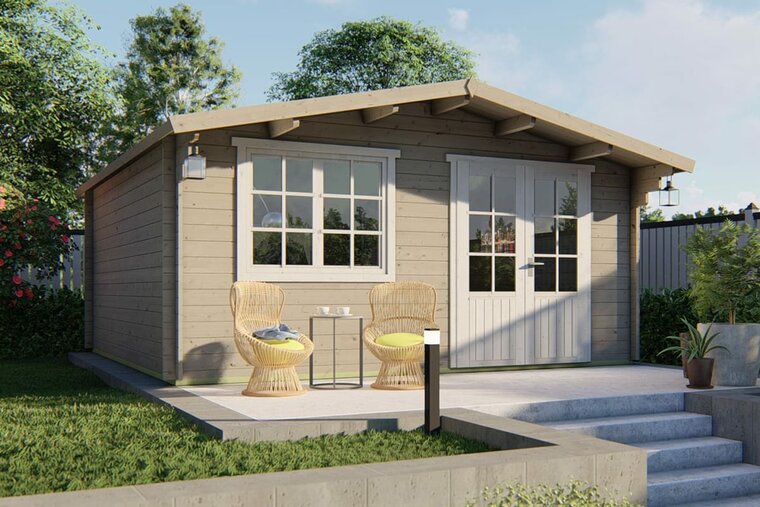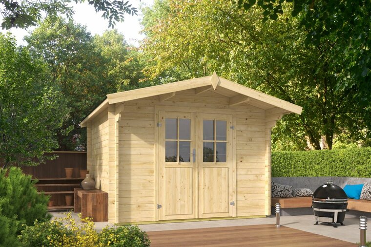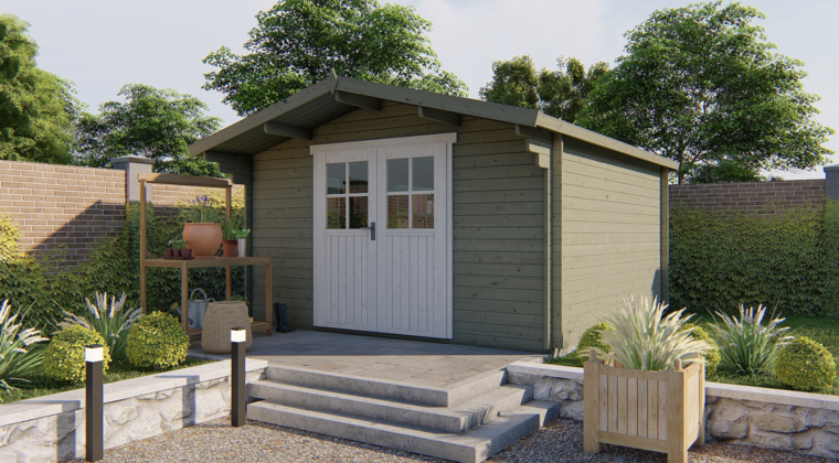 Een blokhut of tuinhuis met een wanddikte van 34 mm is een uitstekende middenklasse keuze. Robuust, goed isolerend en geschikt voor intensiever gebruik — ideaal als je méér zoekt dan alleen opslag.